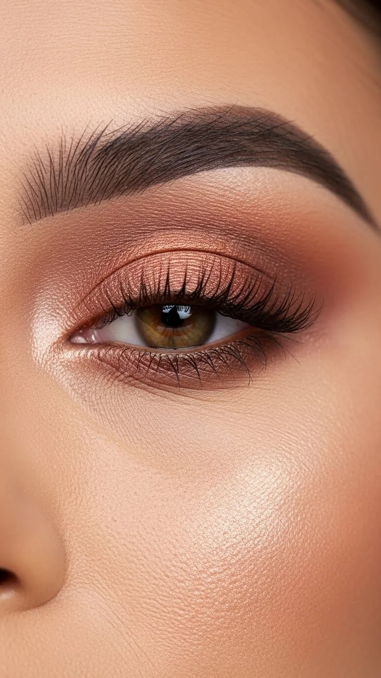 Copper shades catch light beautifully. Apply lightly across the lid. Keep liner minimal. Copper singles are affordable and versatile. This look suits evenings and warm outfits.