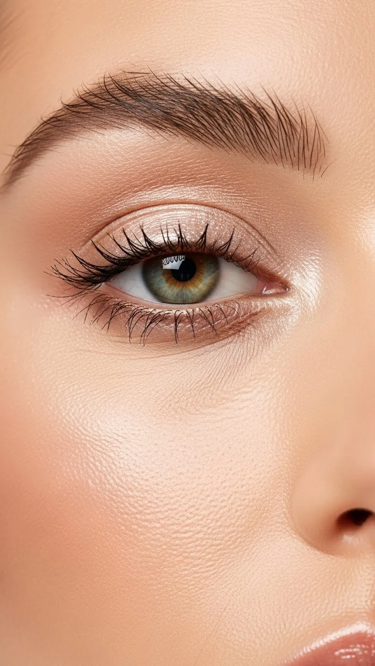 Add a small touch of champagne shimmer at the inner corners. Keep the lid neutral. This brightens the eyes instantly. Use a tiny brush or fingertip. Highlighters work well here. This look feels cheerful and open. It works for tired days when you want a quick lift.