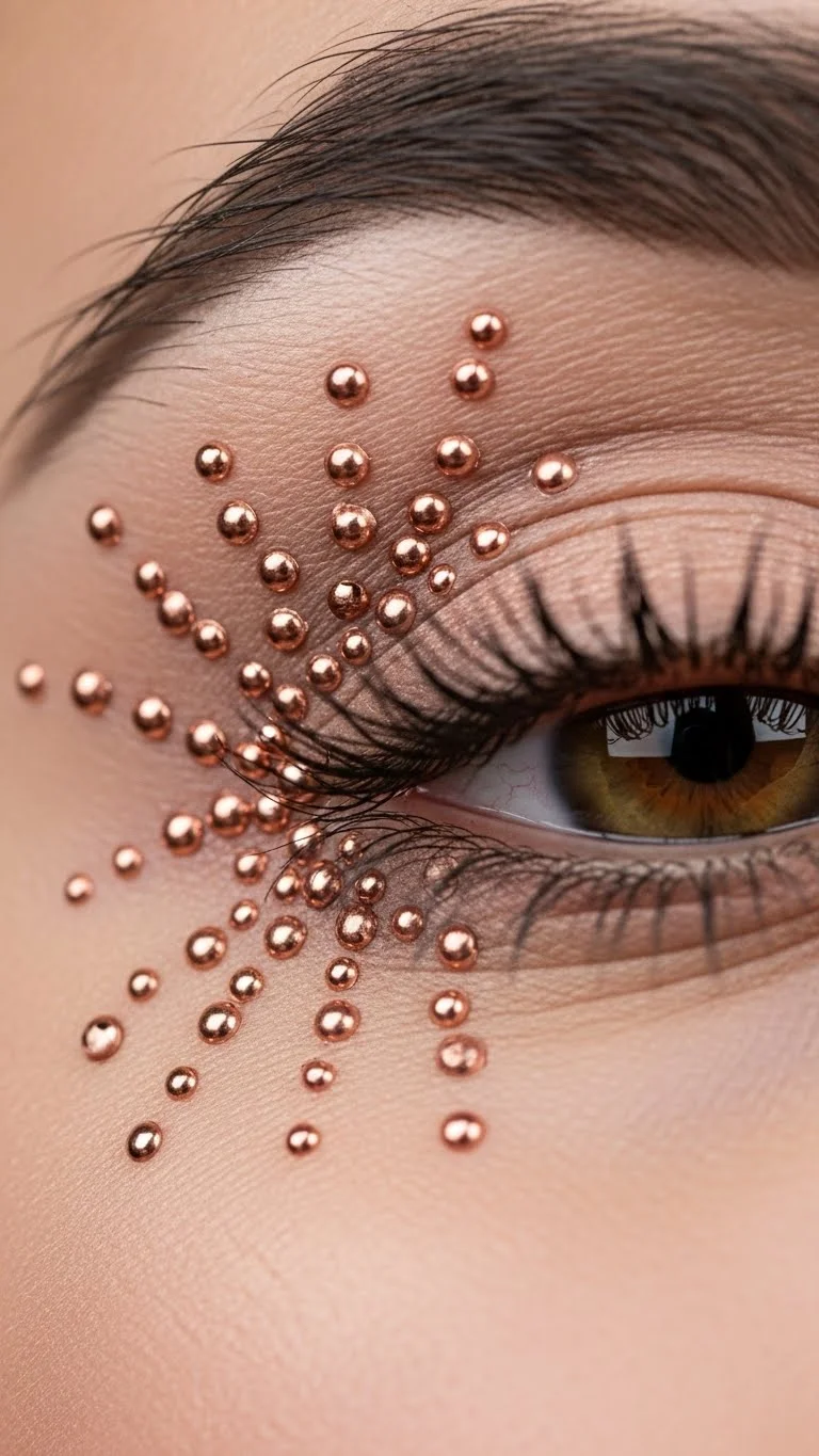 For festivals or parties, rose gold jewels add a 3D element. They catch more light than glitter. You can place one at the center of your lower lash line for a “tear” effect. It’s a trendy way to stand out. You don’t need expensive beauty crystals. Visit a craft store and buy small rose gold flat-back gems. Use a tiny dot of eyelash glue to secure them. This is a smart budget swap that gives you hundreds of jewels for the price of one small beauty pack.