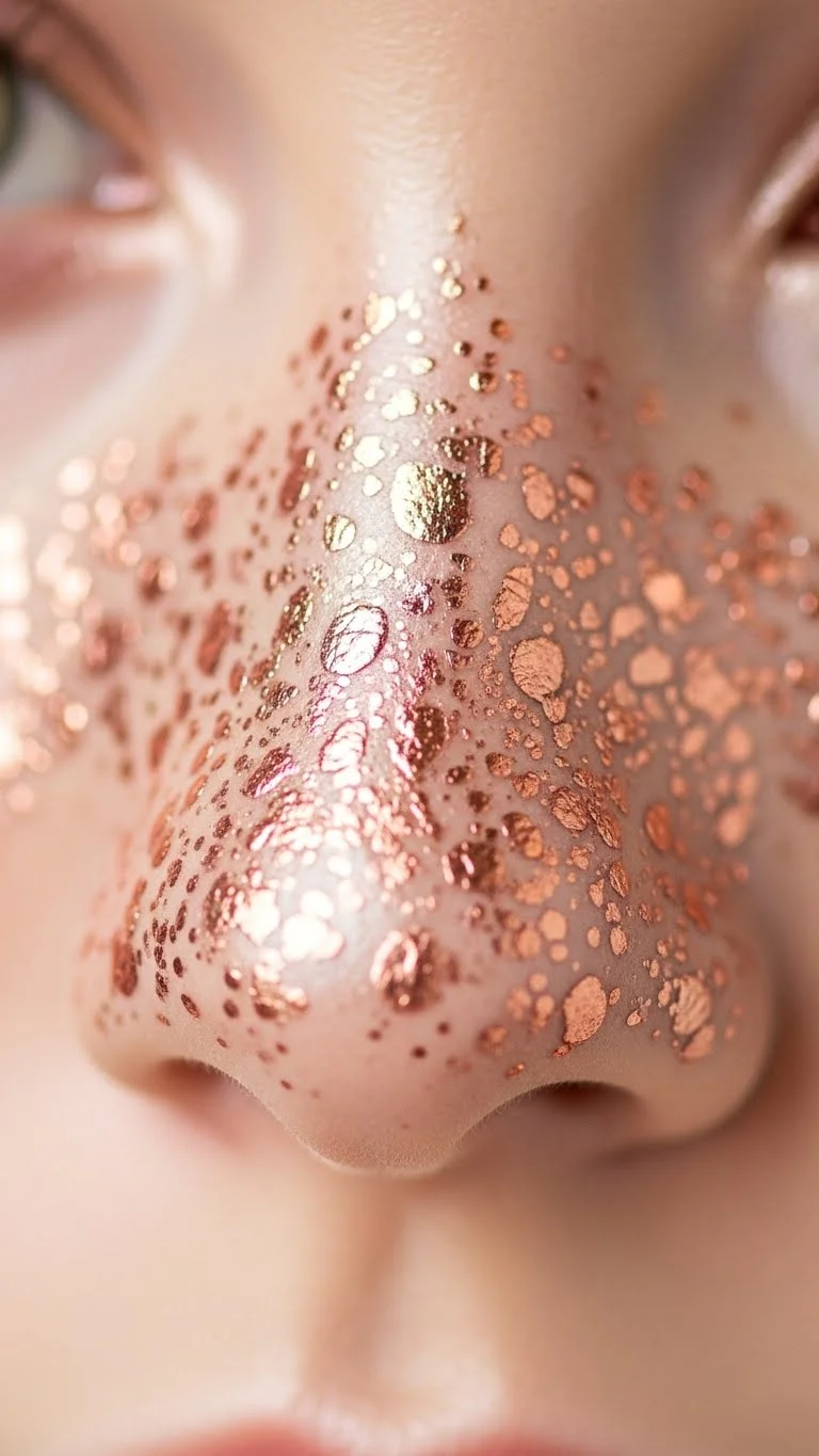Faux freckles are everywhere, but metallic ones are a new twist. They look like little stars across your face. It’s a very creative look that feels magical. Use a rose gold liquid liner and dot it lightly across your nose. Tap the dots with your finger to soften them. This quick finger-tapping technique makes them look more natural. It’s a fun, affordable way to play with your look.