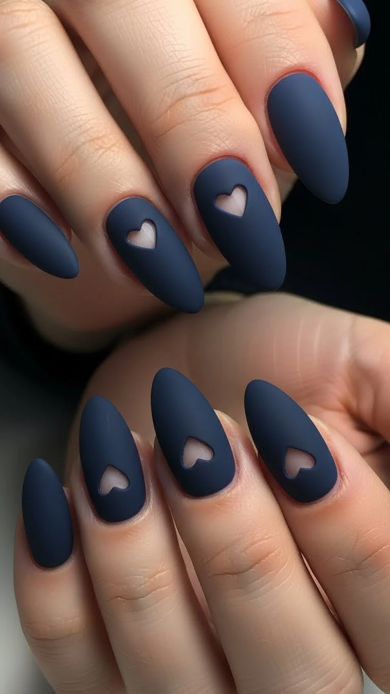This is a variation of negative space. Instead of a large heart, place a very small heart sticker near the tip. Paint over it with a dark, moody color. When you remove the sticker, you get a tiny “peep-hole” effect. This look is mysterious and chic. It works best on longer nails where there is more “real estate” to play with. It is a great way to use dark colors while still keeping the sweetheart theme.