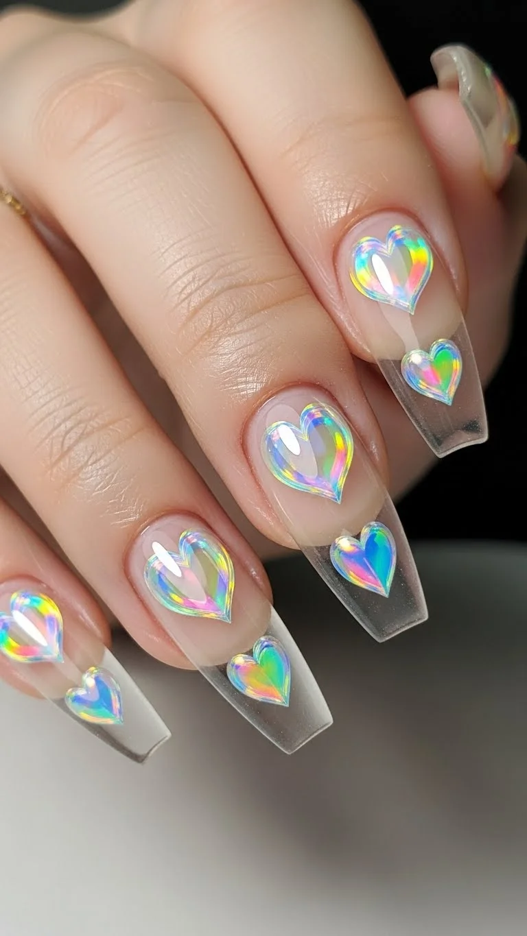 Holographic finishes are fun because they change with every movement. You can use a “holo” top coat over heart stickers. This makes the hearts glow with a rainbow effect. This look is very forgiving. The “distraction” of the holographic shimmer hides any small mistakes in your heart shapes. It is a high-impact, low-effort choice.