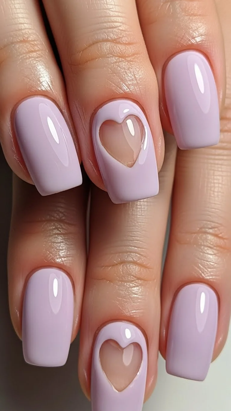 Negative space is a clever way to use your natural nail as part of the art. Place a small heart-shaped sticker in the center of your nail. Paint your chosen color over the entire nail, then peel the sticker off while the polish is still wet. This leaves a clear heart window. It is one of the easiest “pro” looks to achieve at home. You can use painters’ tape to cut out your own heart shapes if you don’t have stickers. It is a zero-cost way to get a clean design.