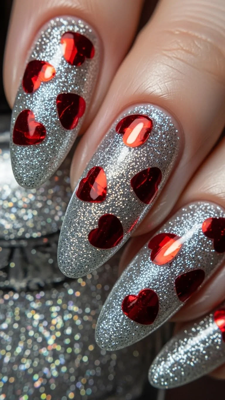 Sometimes more is more. A glitter base with heart-shaped chunky glitter on top is a showstopper. You can find loose heart glitter at craft stores. It is often cheaper there than at beauty supply shops. Apply a base coat of fine glitter polish. While it is tacky, use a toothpick to place individual heart glitters. This ensures they are spaced perfectly. Seal it with two coats of top coat to keep the surface smooth.