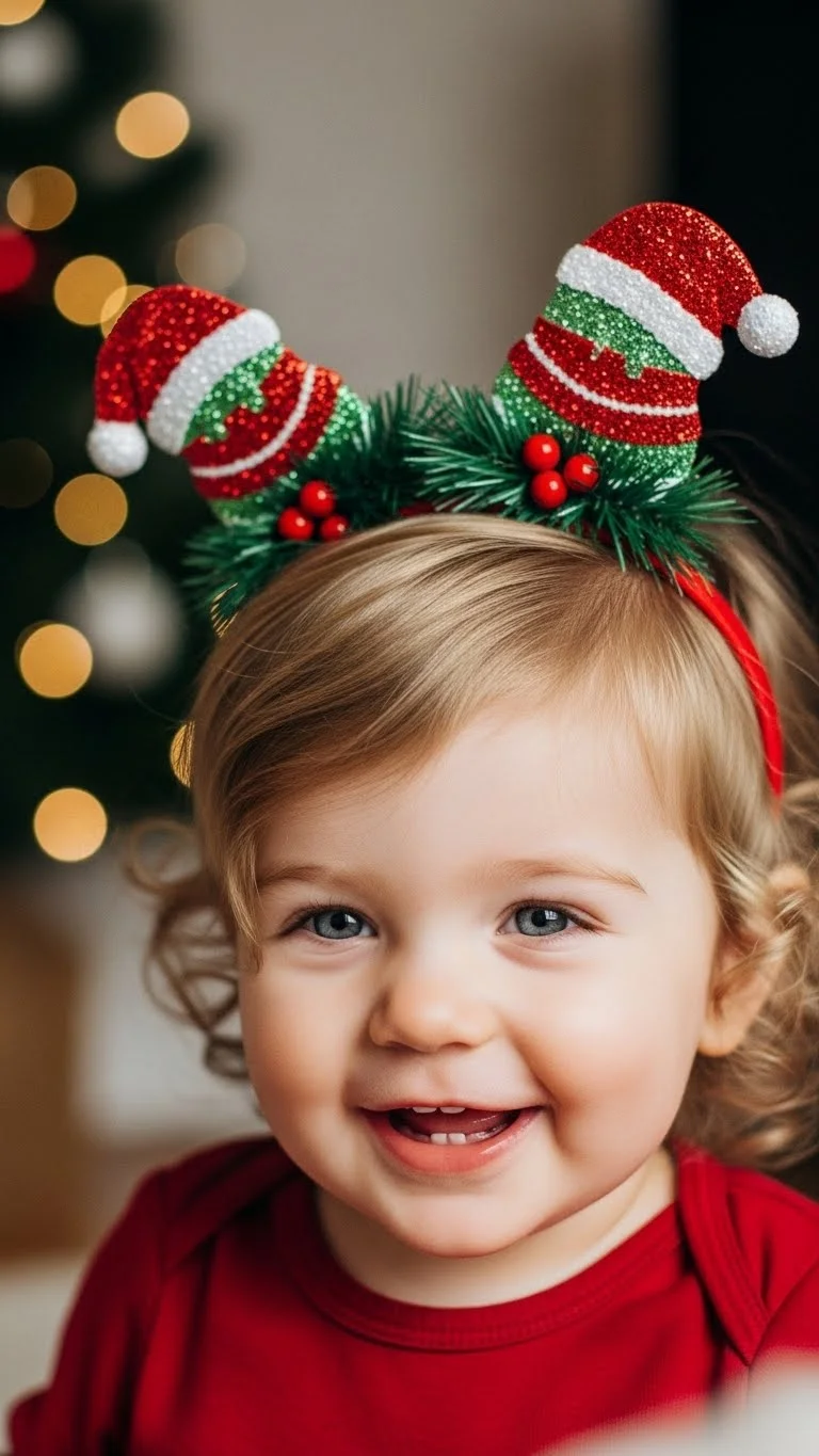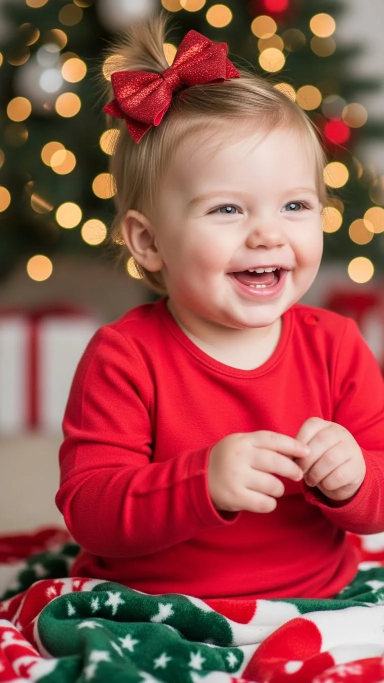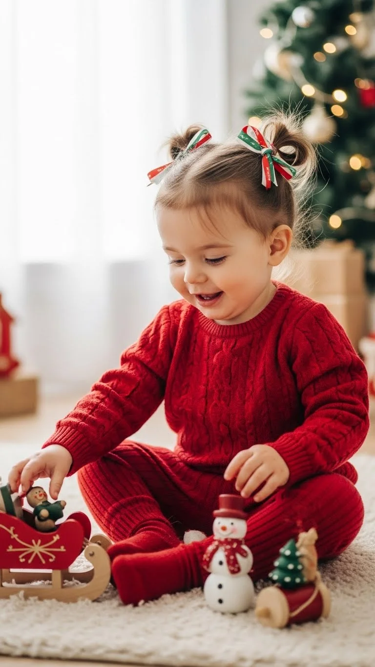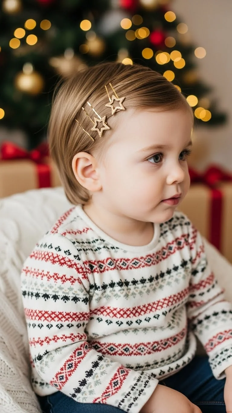 Sometimes the simplest styles are the cutest. Leave hair loose and add festive clips, tiny bows, or sparkling pins. Perfect for toddlers who dislike hairstyles but still want a holiday look. Quick, easy, and versatile. Works with all hair types. Adds instant charm and is ideal for photos, parties, or casual holiday fun.