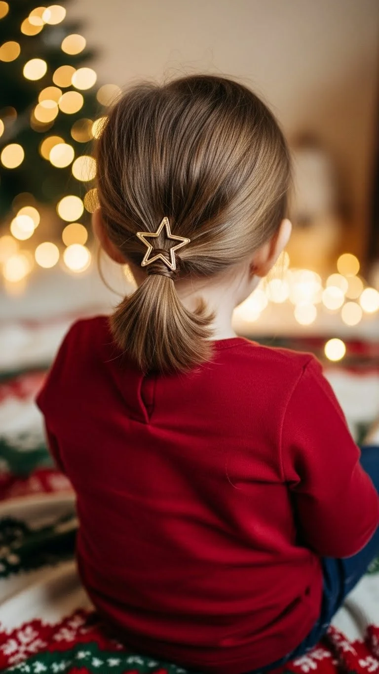 A low ponytail is effortless yet polished. Gather hair at the nape and secure with a gentle elastic. Add a clip or small bow for holiday flair. Ideal for everyday activities or church gatherings. It’s quick, comfortable, and keeps hair tidy. Toddlers with fine hair will benefit from a light-hold mist to control flyaways. This style is simple, affordable, and versatile for various Christmas occasions.